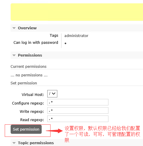 如上图所示,页面默认为我们设置了一个可读,可写,可管理配置的权限;所以,我们只要点击Setpremission就可以了。