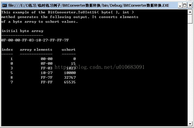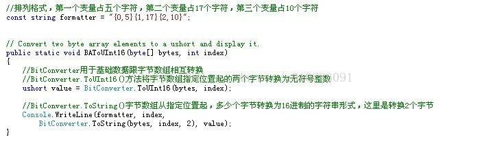 //BitConverter.ToUInt16()方法将字节数组指定位置起的两个字节转换为无符号整数