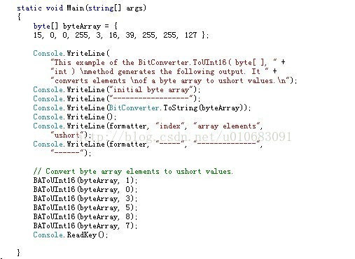 "This example of the BitConverter.ToUInt16( byte[ ], " +