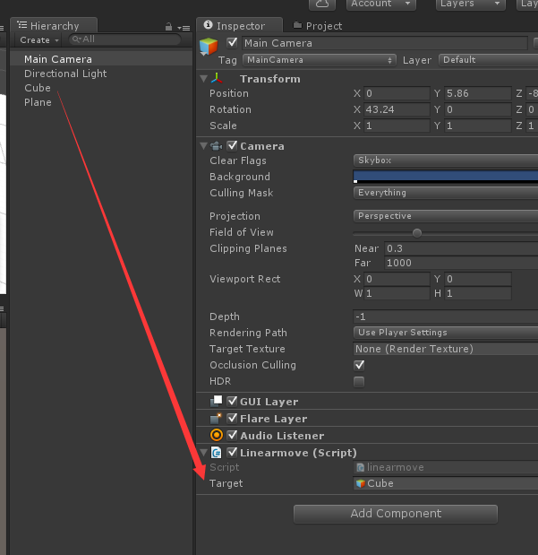 首先在场景里新建一个plane(白色)和cube(黑色) ,这个cube就是用来跟随鼠标的物体,并且给cube添加标签tile。