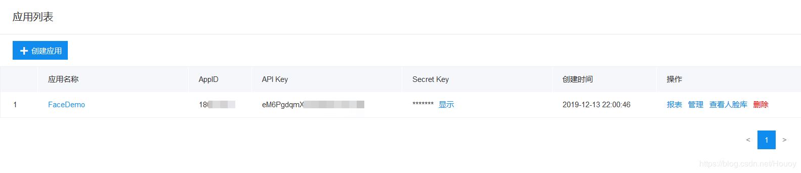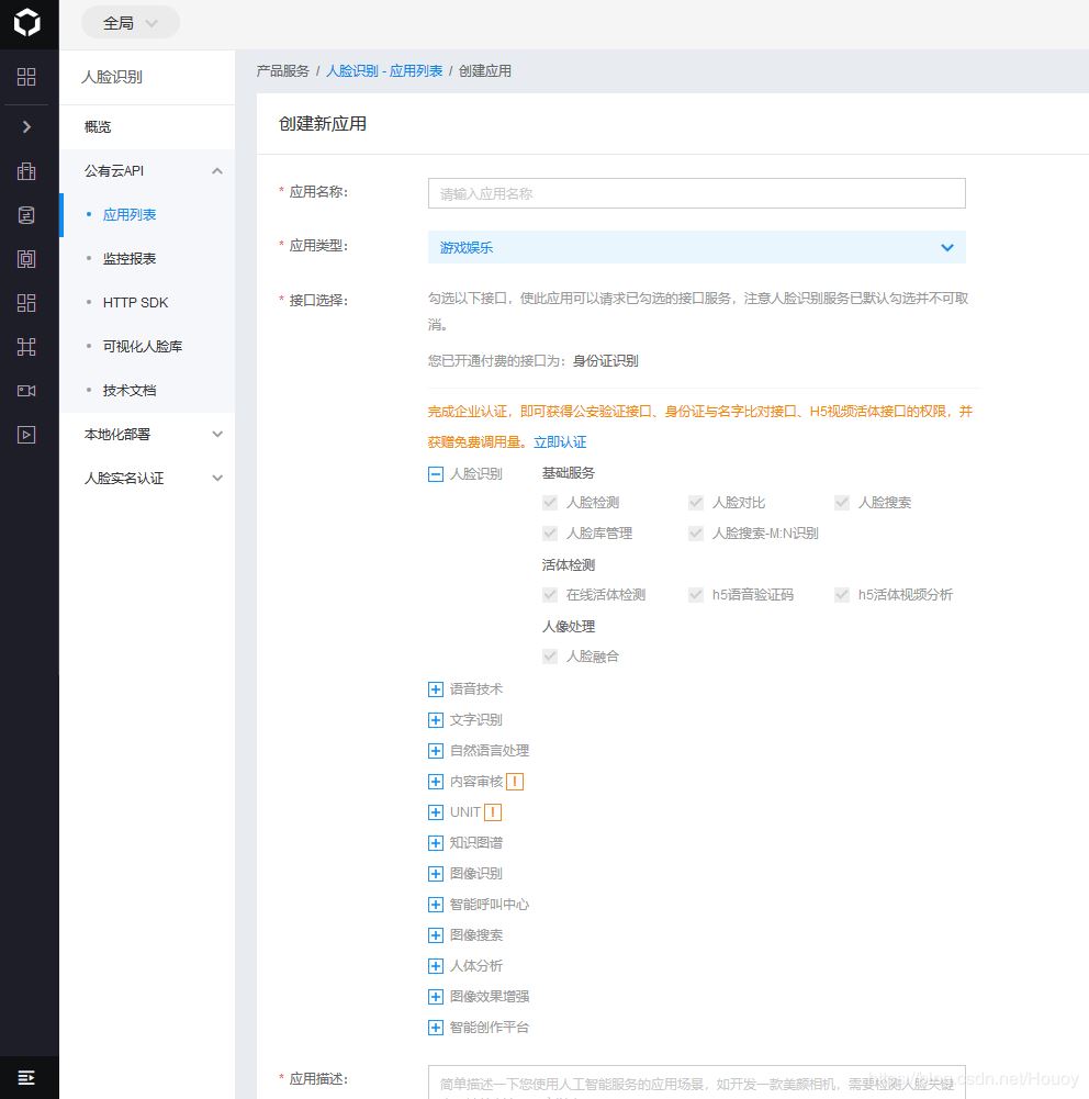 第一步,在百度创建你的人脸识别应用