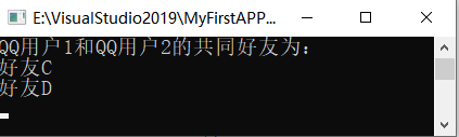 Console.WriteLine("QQ用户1和QQ用户2的共同好友为:");