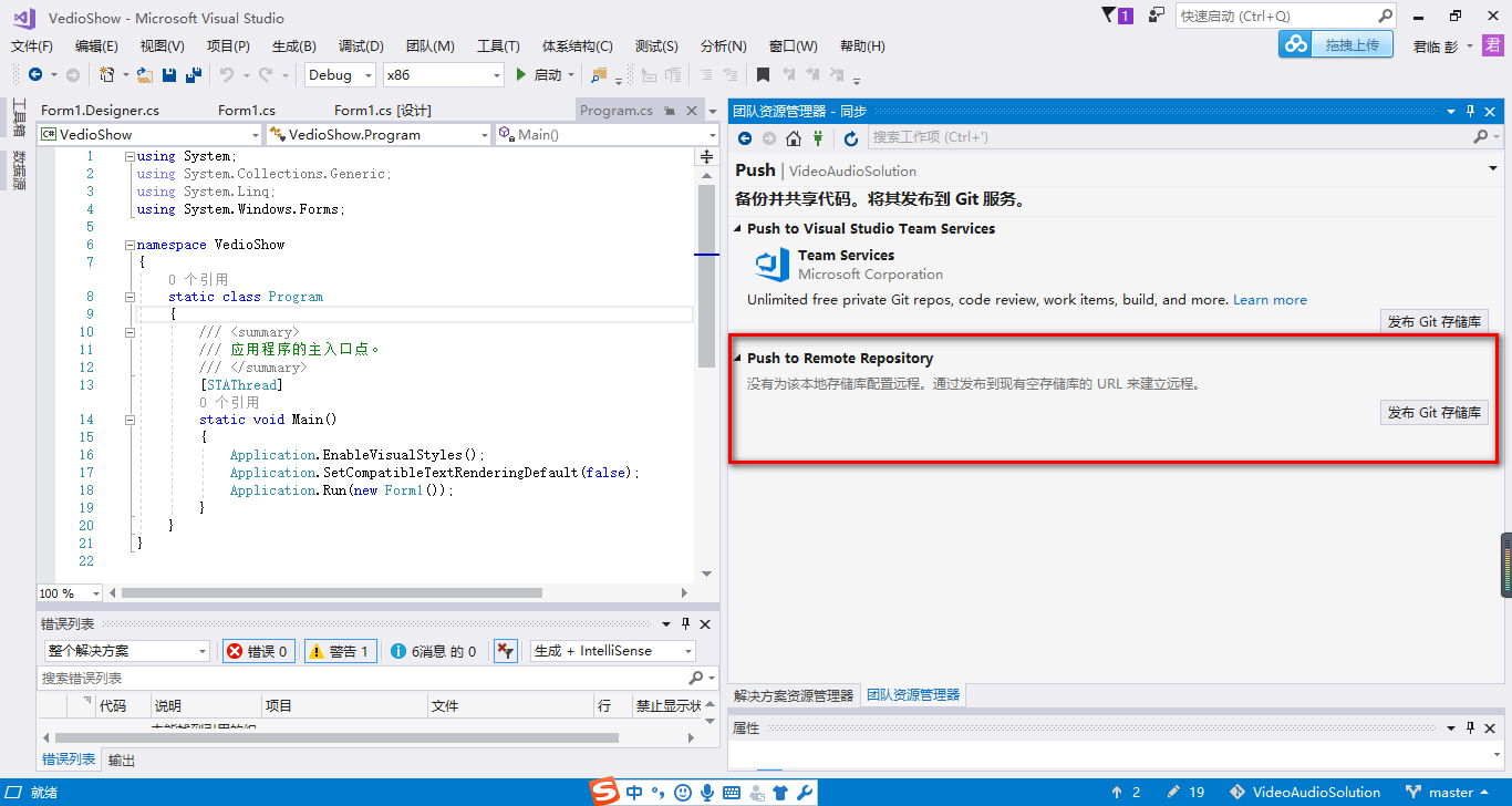 Git现在已是无处不在了,只要有代码的地方基本都支持Git。本人在使用VS的时候从来没用过Git,因为之前都是一个人单独开发C#窗体或者移动端程序,所以也没关注过要把这部分代码提交到SVN或者Git进行管理。为了使自己的成果可以轻松地在家或者公司进行查看最简单的方式就是提交代码到Git上,不过商业的代码我们最好不要私自发布,避免给自己代来麻烦,同时也需要坚守码农的操守和底线(说得难听点叫底裤)。