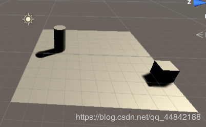 1.首先在Unity3D创造中一个正方体,一个圆柱体和一个平面。