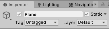 2.将正方体和平面设为静态(Static前的方格打勾)