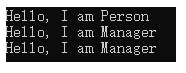 Console.WriteLine("Hello, I am Manager");