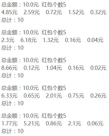 /// 一次性拆分红包,不考虑机会平等性