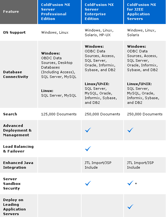 * Macromedia ColdFusion MX和JRun4可以免费在官方网站得到开发者版本,同商业版本相比,只是限制了开发者版本的ip访问限制,服务器高级报表工具,服务器均衡负载功能等一些高级功能的使用。