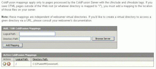 Mappings是在CFMX Server端创建一种名称来代表目录路径的处理方式。如下图: