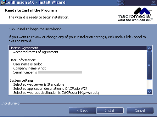 好了,通过这一期的说明,大家已经基本了解了ColdFusion MX的基本构架以及安装方式。下一期将为大家介绍ColdFusion MX的基本管理步骤,以及简单的入门编程,跟着本教程来一步一步进入ColdFusion MX奇妙世界。