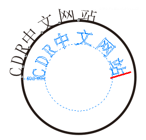 步骤2:单击“文本工具”,将光标移动到圆形路径上,当光标右下角显示曲线图标~时,单击路径,输入文本。