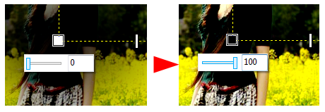6. 应用透明度工具拖动控制线中的白色矩形调节钮,可以改变对象透明深度。