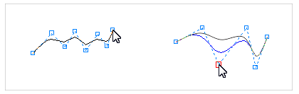 与线条接触的控制点称为"夹住控制点"。夹住控制点与锚点作用相同。拉动线条但不与其接触的控制点称为"浮动控制点"。第一个和最后一个控制点总是夹在末端开放的B样条工具上。默认情况下,这些点位于浮动控制点之间,但如果您想在B样条工具中创建尖突线条或直线,可以夹住这些点。您可以使用控制点编辑完成的B样条。