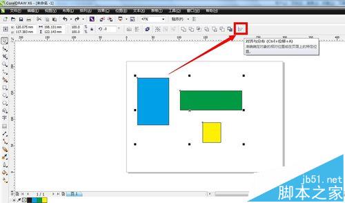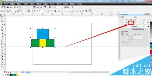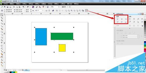 4、接着,在cdr软件的右边会出现一个对齐与分布的操作面板,我们可以在“对齐”设置里面看到有六种对齐的选择