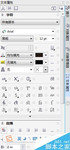 2、选择文本属性,在右侧弹出文本属性框,如下。