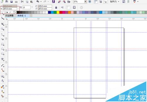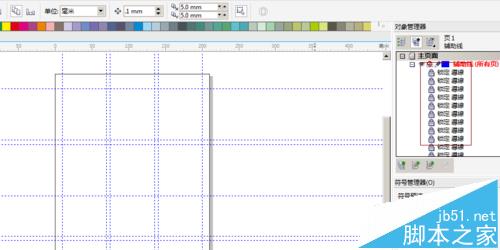 5、添加辅助线,并计算好高度,中间缝大小 ,竖向格子与格子之间间隔为6mm,最底下横向辅助线为15mm,拉好辅助线,并锁定。