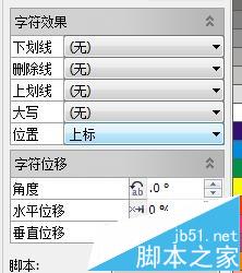 3、点击(字符格式化)之后,CorelDRAW界面的右边彩色调色盘旁边会出现一个选项卡,选择(字符效果栏)下面的(位置)右边选框,默认有一个无字,点击。