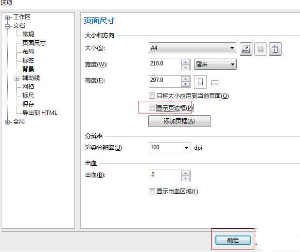 3、点击文档-->页面尺寸-->显示页边框将前面的勾勾去掉。效果如下。勾勾取消后的效果。