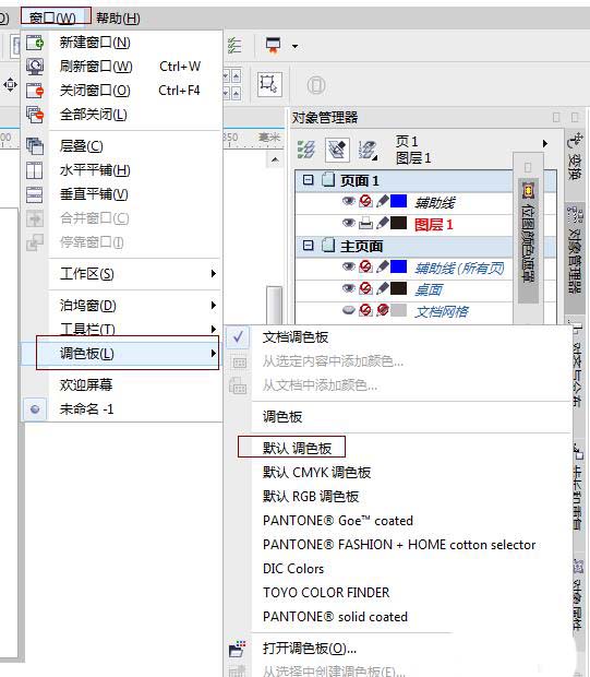 1、我们点击窗口-->调色板(L)-->默认调色板