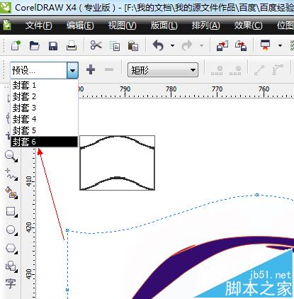 9、如图所示,在弹出的下拉列表菜单中,我们点击箭头所指的“封套4”这个类型。