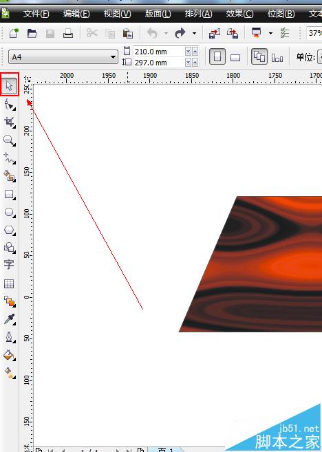 2、如图所示,用选择工具选中箭头所指的这个图形。