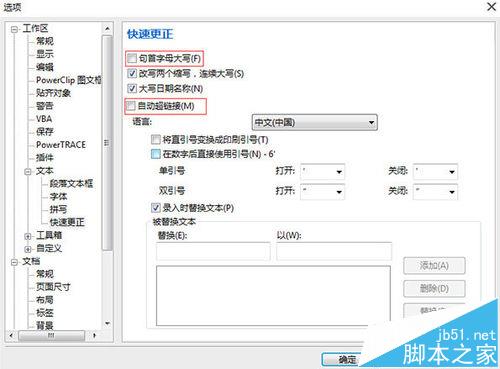 6、句首字母大写,这是适合英文排版的,如果你很少进行英文排版,这个就不用勾选了。自动超链接功能基本属于多余。