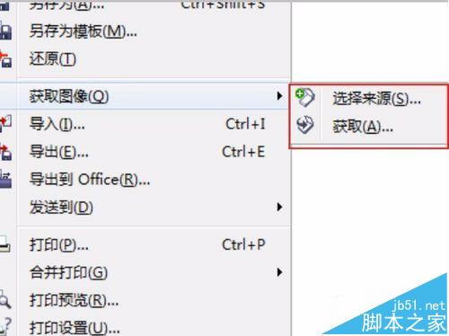 3、把鼠标移到“获取图像”,出现“选择来源”和“获取”对话框,如图所示
