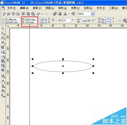 3、再选择”椭圆工具“,画一个椭圆,并且设置椭圆的宽度为100mm,高度为19mm。