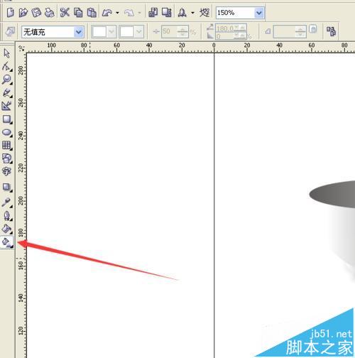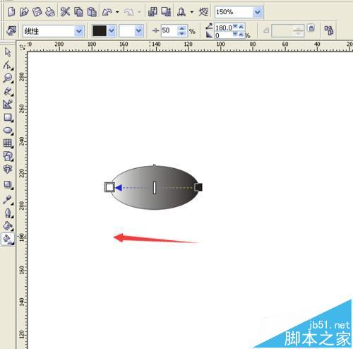 11、选择“交互式充填工具”,按着Shift键,在椭圆上从右到左拉出线性填充来。
