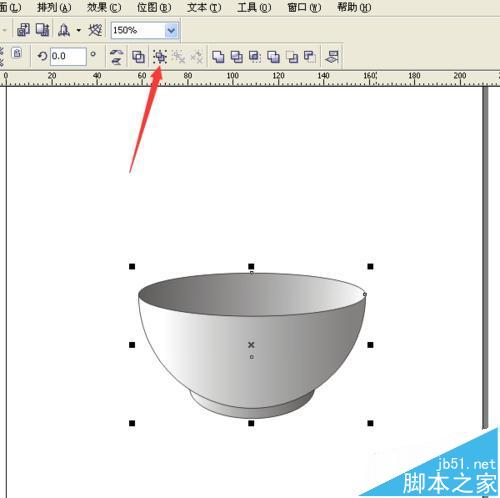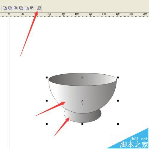 14、用挑选工具,按着Shift键,把碗底的椭圆和半圆同时选择上,再点击上边属性栏的”对齐和属性“按键。