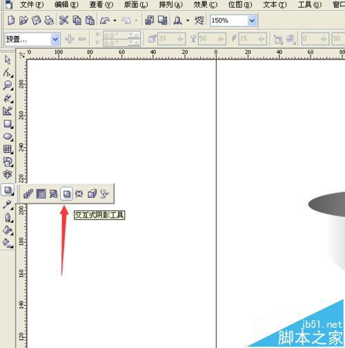 19、接着,选择“交互式阴影工具”,从碗底向右上角拉出一个阴影来。