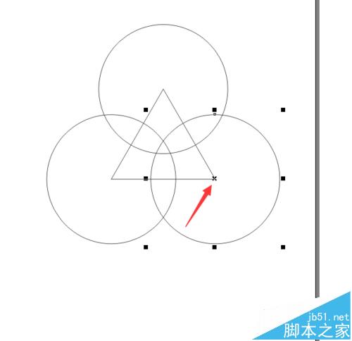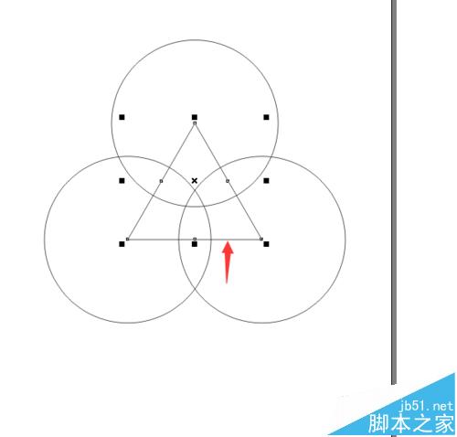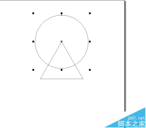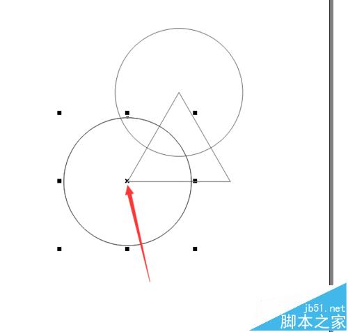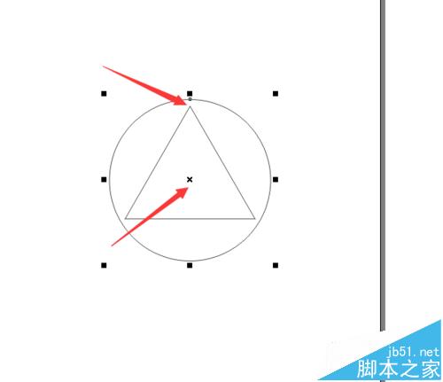 5、用选择工具选择上正圆,并且把鼠标放在圆心的位置上,然后按下鼠标,将圆心拖到三角形上边的角上,如下图的效果。