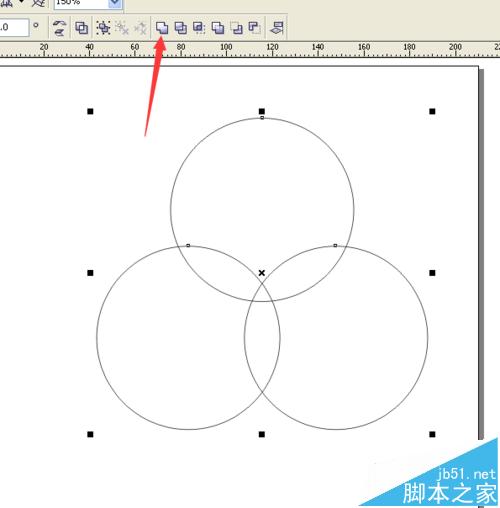 9、接着,将三个圆形都选择上,再点击属性栏的“焊接”按键,对三个圆进行焊接。