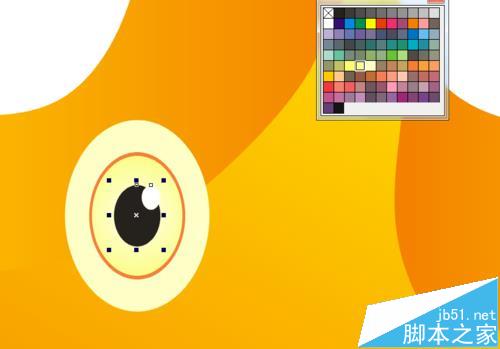 6、在眼睛处绘制椭圆,从椭圆角点处拖动缩小椭圆(按shift键可从中心缩小)的同时并单击右键复制一份,填充合适的颜色。多次复制填色得到眼睛,复制另一个眼睛