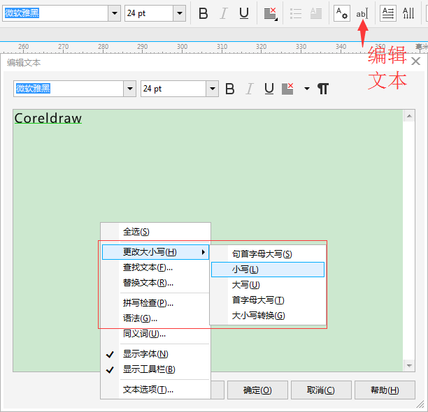 很多新手朋友们在刚接触CorelDRAW软件时,经常会碰到一些小问题,比如明明输入的字母为小写,按确定之后会直接显示字母变大写?很多朋友表示不解,本文就这一问题,做一个简单介绍,希望对新手朋友有所帮助。