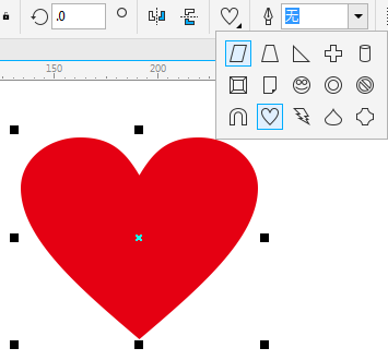 1. 在工具箱中选择“多边形工具”栏中的“基本形状工具”,在其属性栏中选择“完美形状”工具中的“心形”图形。