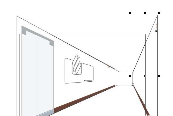 9、这样做的图就不回看起来不协调了。下面要进行一写细节的处理,在填色上也要注意一下墙体 我这里的填色是C2 M0 Y0 K3。只是填色是远远不够的,太假了。因为一面墙不可能就一个颜色,灯光,墙高,等很多因素决定着这些,可我们用渐变又无法做到这样的效果。只有用交互式透明来做,用同样的方法也可以做其他几面,天花板两边都要做这样的效果,而地板上就不用了