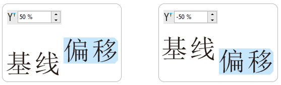 4. 数值越大,文字偏移位置越大,输入一个正值,被选中的文字便会相应的上移;而输入一个负值,文字便会相应的下移,如下图(右)所示。