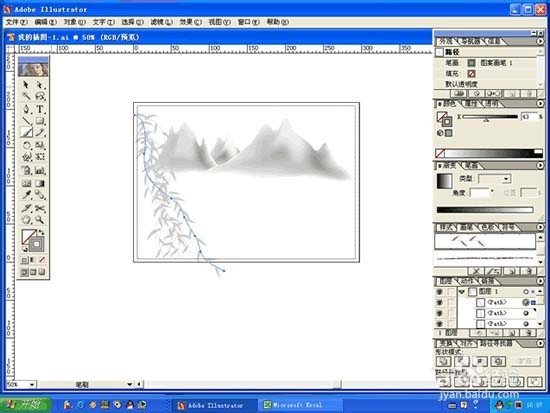 1、定义笔刷,主要用于画柳条的,最好用辅助网格,颜色用灰度,笔画宽度枝条1pt,叶子0.25pt,笔画用60%黑色,填充用40%