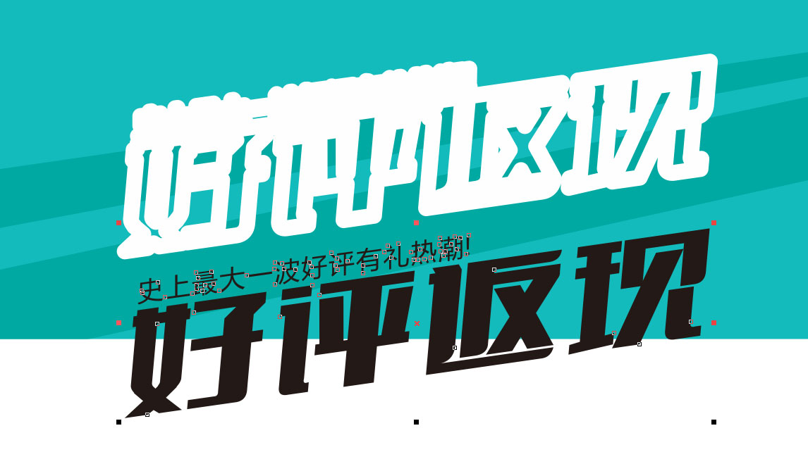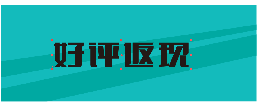 3、用文字工具打上好评返现,我这里用的字体是方正粗谭黑简体,双击倾斜下,如图