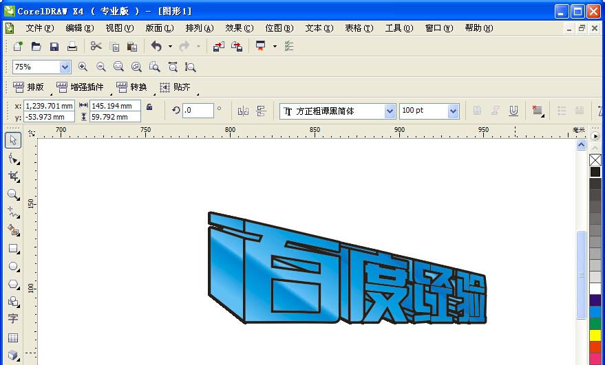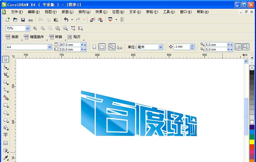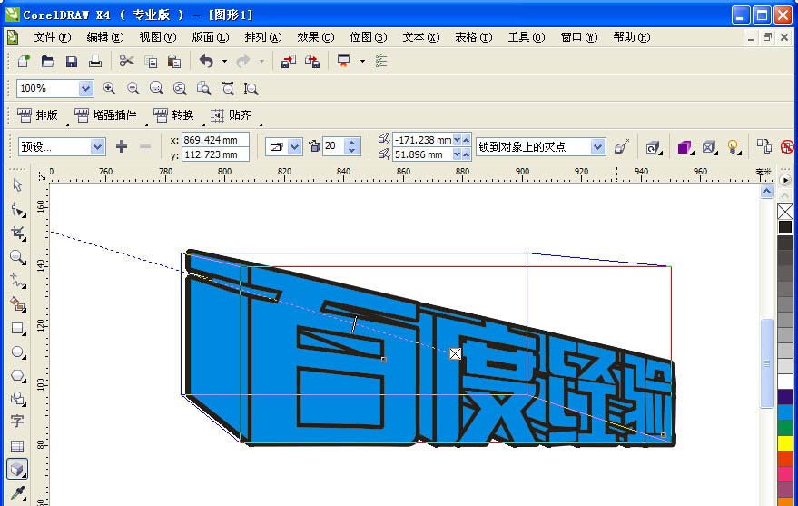7、选择交互式立体工具,拖拽出立体效果,如图,