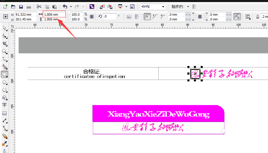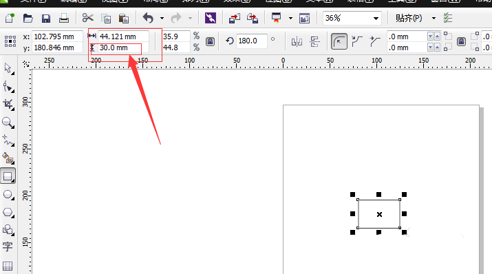 9、我们看下这张图合不合适,一版5*4mm的大小比较合适,用矩形 框一下“想”字,然后看工具栏宽的大小,感觉比较合适。然后把框删掉。如图所示在