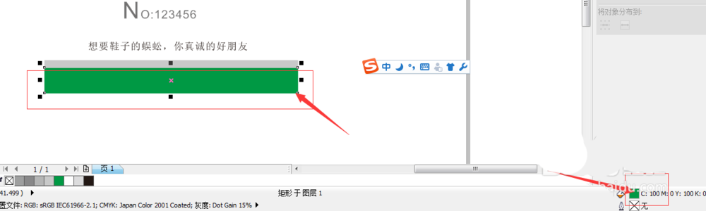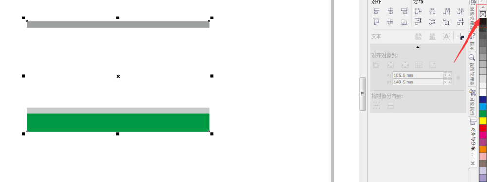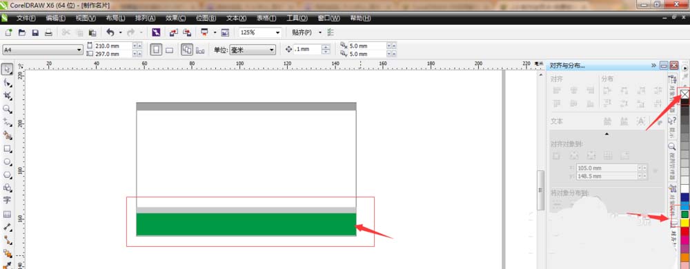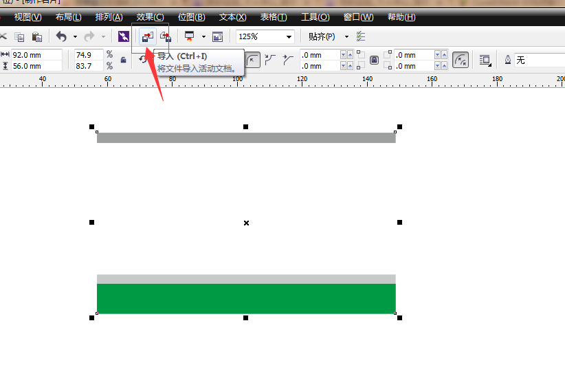 5、复制一个并调整大小,大小为92x11.827mm,填充灰色,去掉轮廓线,在右边颜色工具栏点击那个叉叉,用右键既可以去除外边框。再把这个灰色复制一个,往下移动,填充绿色。大小为 如图所示绘制。