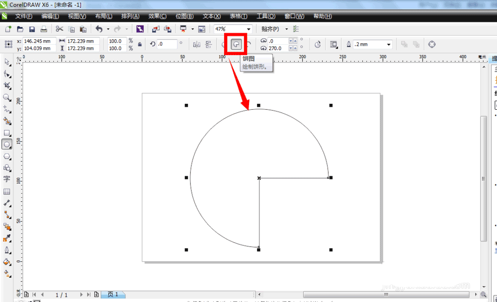 2、使用鼠标单击一下大圆上方的“饼图”,页面上的图形即变成了如图所示的图形