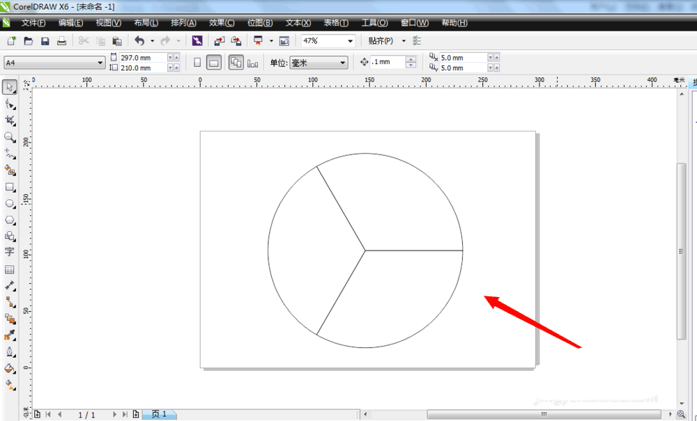 有时候我们在cdr软件里面绘制好一个圆形,想要把它平均划分为几等分的,比如三等分,怎么办呢?下面我们来看看吧!
