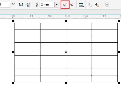 2. 选择表格,单击属性栏“取消组合对象”按钮,快捷键Ctrl+U,将对象变成了单个的小格子。