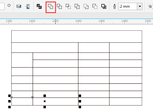 5. 用“选择工具”将至少两个对象选择,在属性栏选择“合并”按钮,其功能可以将两个或多个图形对象结合成一个对象,即可实现“单元格的合并”。