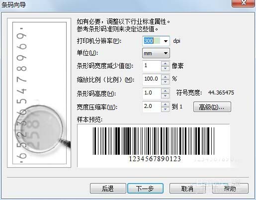 6、然后单击下一步,设置条形码的参数。