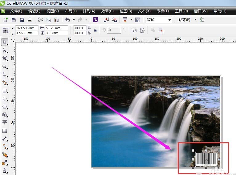 8、回到编辑界面,我们将条形码的位置设定好,就将一个条形码制作完成了!