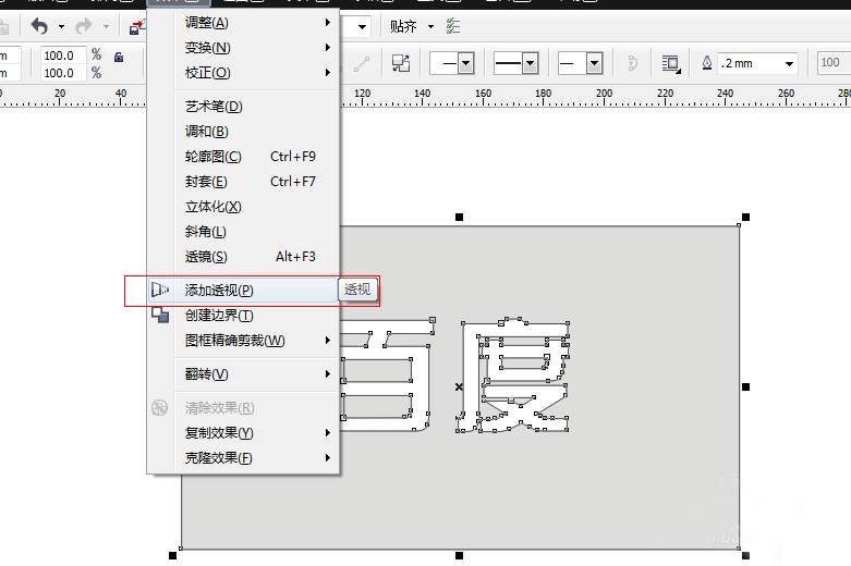 4、选效果---添加透视,调整到自己合适的视觉角度,同时按ctrl+q,将图形转换为曲线!